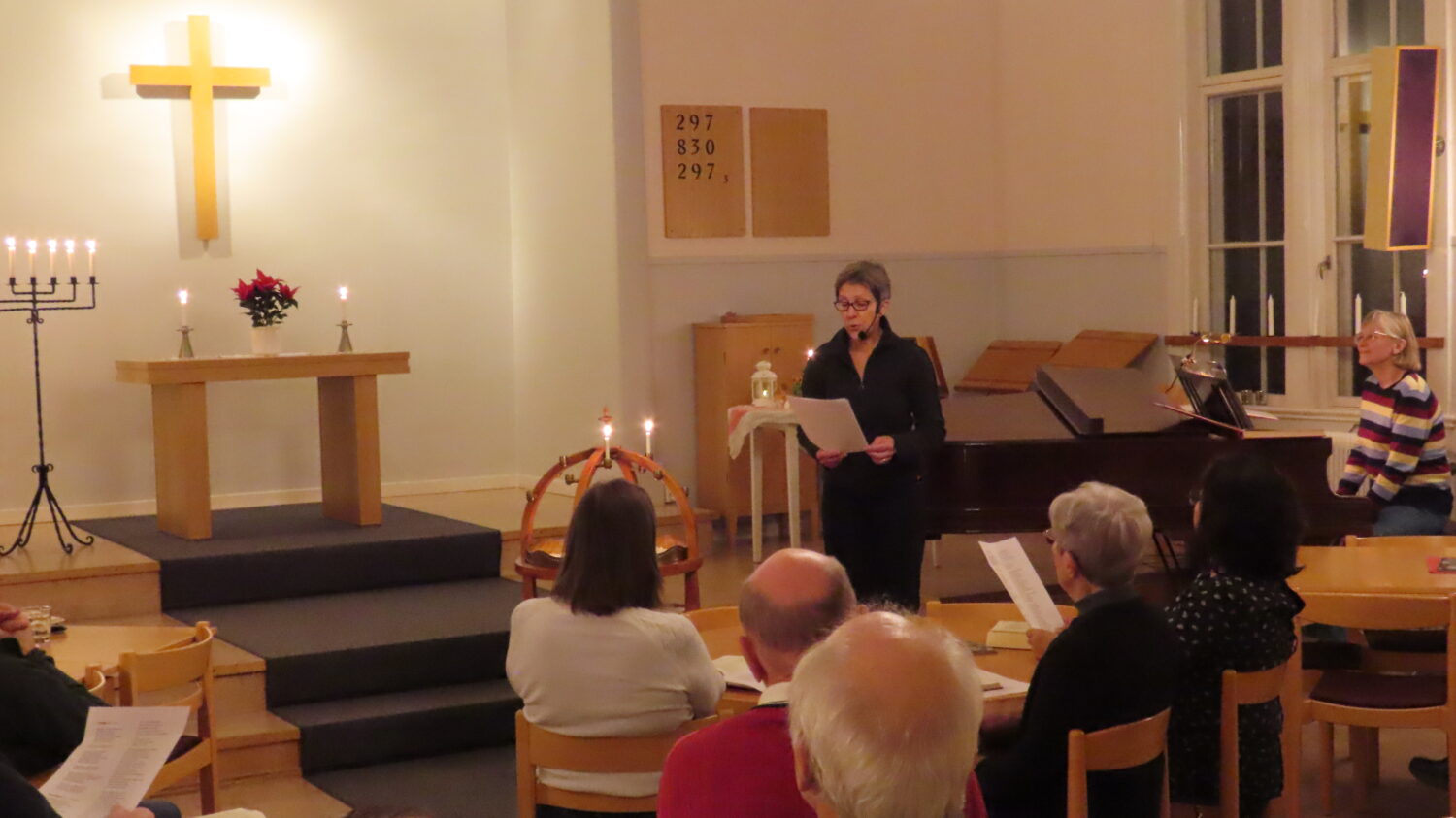 Andaktsledare Monica Jonsson. Läsning Bengt Jonsson. Piano Karin Svanäng.