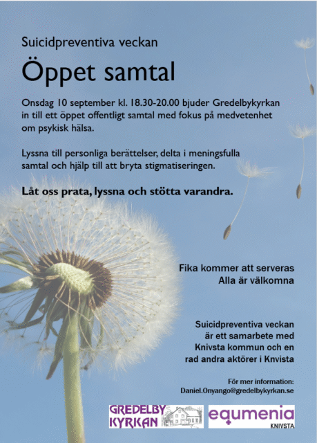 Gredelbykyrkan inbjuder till ett öppet offentligt samtal med fokus på medvetenhet om psykisk hälsa.